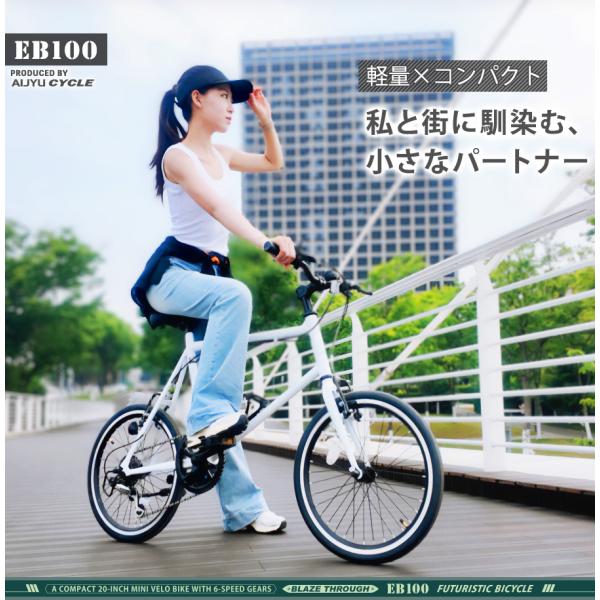 AIJYU CYCLE ミニベロ自転車 20インチ 6段ギア ボトルホルダー 充電式LEDライト ダイヤルロック錠 スマホホルダー [EB100]
