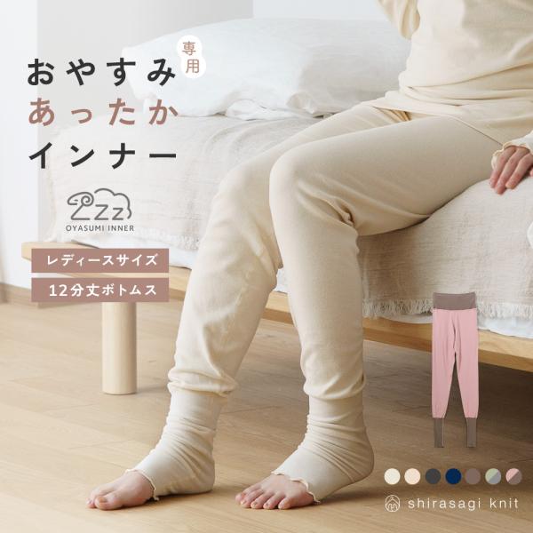 おやすみインナー 腹巻き付き パジャマ 下のみ パンツ 綿100% 12分丈 両起毛 あったか ギフト レディース 温活 秋 冬 ズボン 暖かい 肌着 婦人 女性