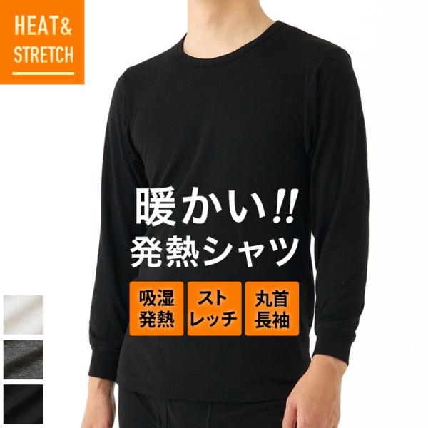 送料無料 発熱 長袖 丸首 インナー シャツ メンズ 秋冬 吸湿 防寒 暖かい あったか ストレッチ アンダーシャツ ウェア 男性 下着