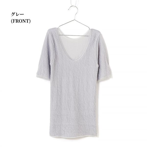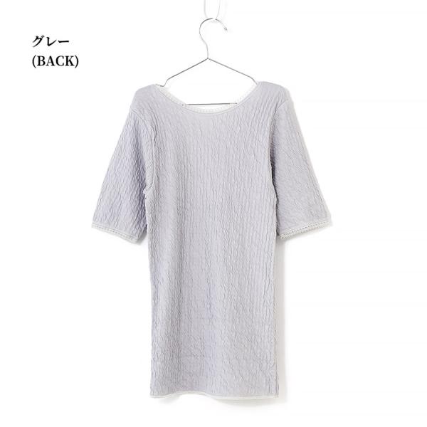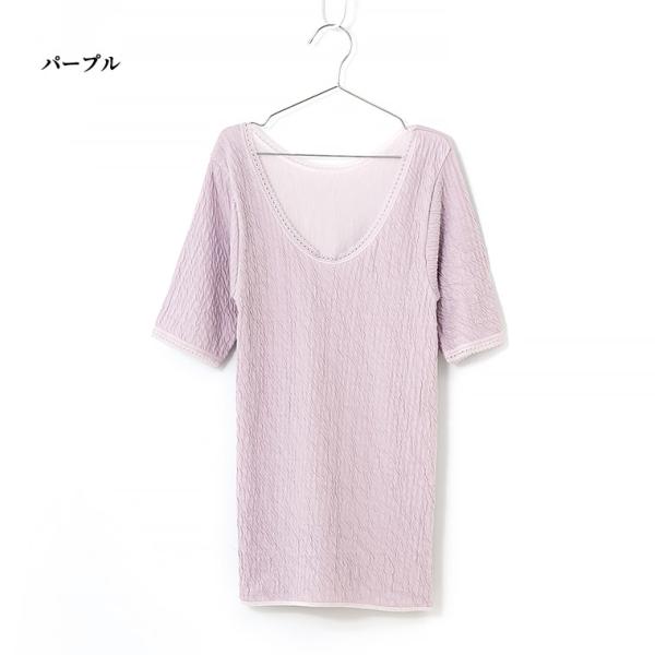 在庫処分 暖流 5分袖 ウェーブ インナー レディース 秋冬 表側綿100% あったか レース ストレッチ 暖かい 下着 肌着 婦人 女性 グレー/ピンク/パープル M/L/LL D5310N-R 爆買