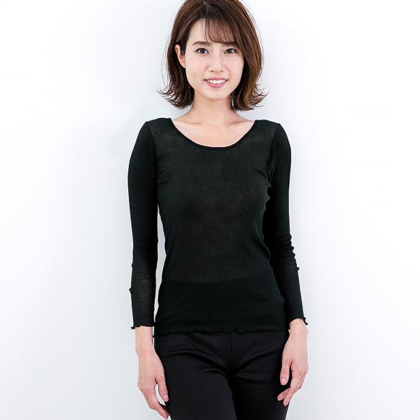 綿100 % 長袖 リブ インナー 肌セレブ レディース 年間 肌に 優しい やさしい 春 夏 秋 スーピマ 綿 敏感肌 コットン ストレッチ おしゃれ シャツ 軽い 締め付けない スーピマ 綿 日本製 黒/オフホワイト/グレー M-L/L-LL G5092X-RT 爆買