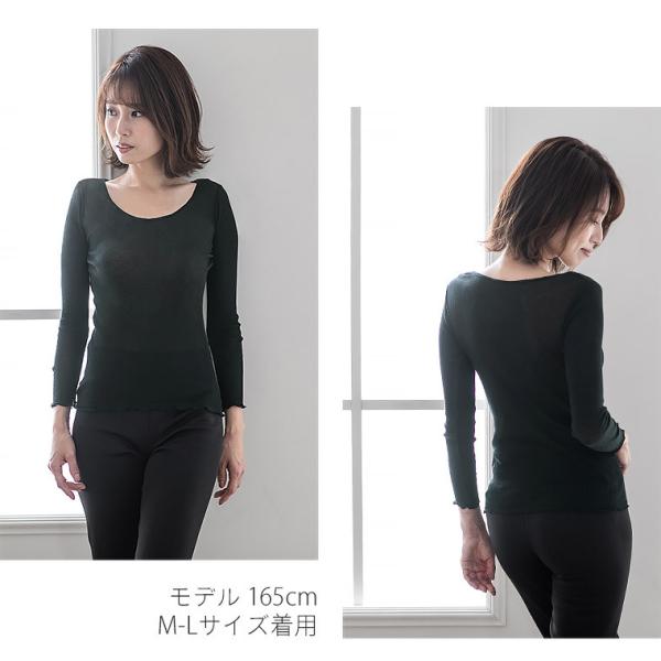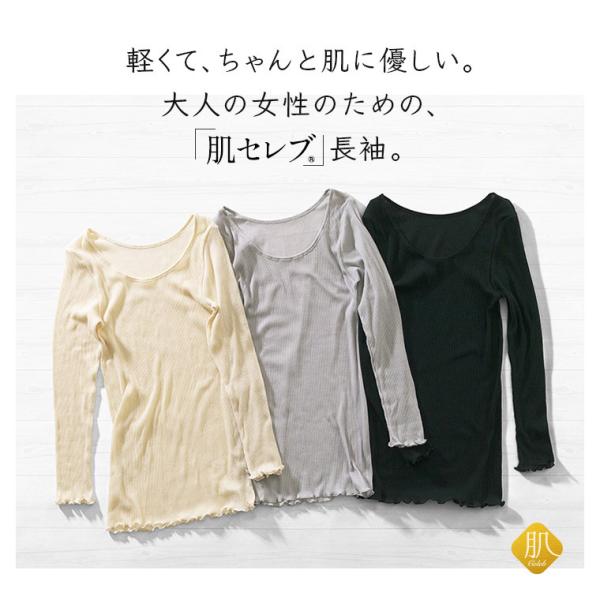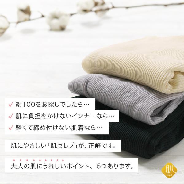 綿100 % 長袖 リブ インナー 肌セレブ レディース 年間 肌に 優しい やさしい 春 夏 秋 敏感肌 コットン 軽量 軽い 締め付けない