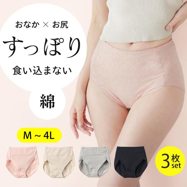 3枚セット すっぽり ショーツ 深め 綿 タグなし お肌に優しい ヒップアップ 冷え対策 レディース パンツ スタンダード レギュラー 大きいサイズ