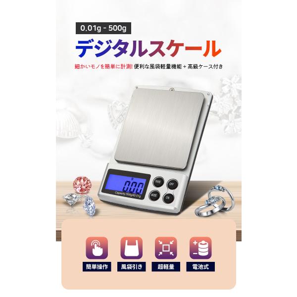 送料無料 デジタルスケール 0.01gから500gまで 保護ケース付き