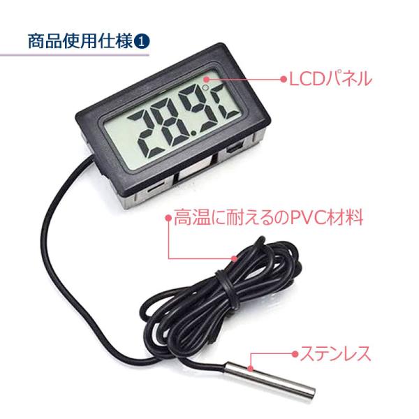 デジタル 温度計 小型 防水 耐久性 多機能 デジタル温度計 防水 外部センサー -30℃~110℃対応 水槽 冷蔵庫 冷凍庫 パソコン PC ペット 室温 水槽 1m 簡単 便利