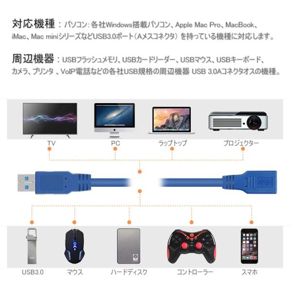 USB3.0 延長ケーブル 1M 超高速 延長コード USB A オス-メス