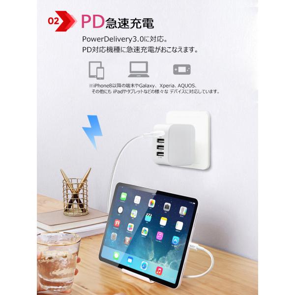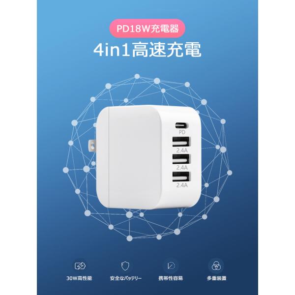 充電器 タイプc type c 充電器 iphoneスマホ充電器 急速充電器 30W PD+QC3.0 4ポート 高速充電 ACアダプター USBポート対応 アダプター スマートIC タブレット