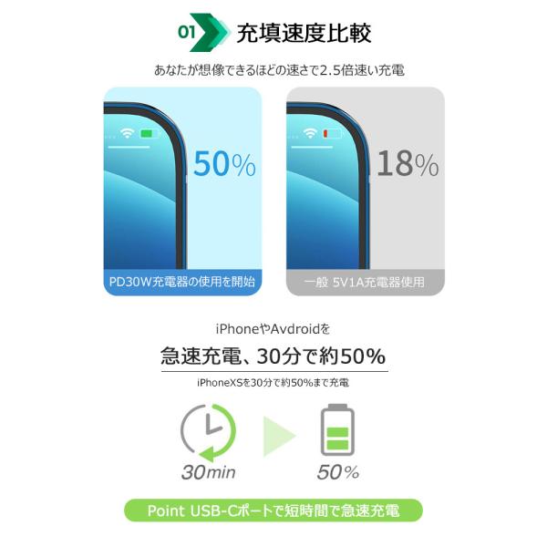 ・PD(パワーデリバリー)搭載。最大30Wの急速充電対応。
