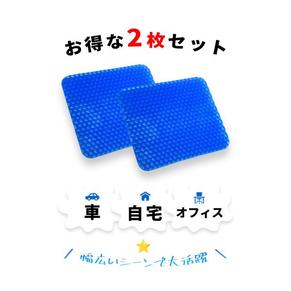 ジェルクッション 2枚セット ゲルクッション 体圧分散 腰痛対策 ハニカム 座布団 車 オフィス 椅子用クッション 蒸れない 大きめ 腰痛対策 洗える カバー付き