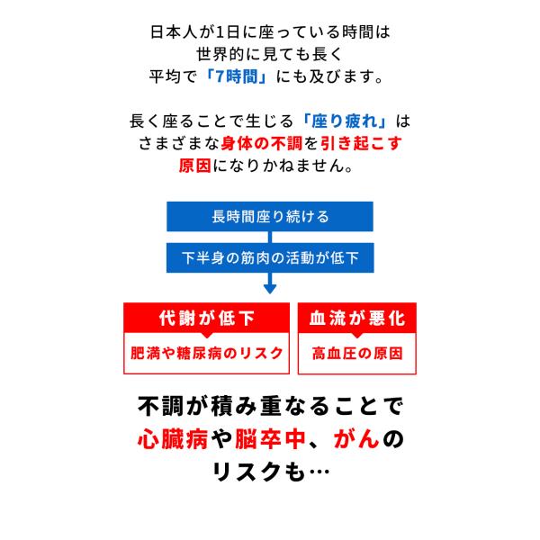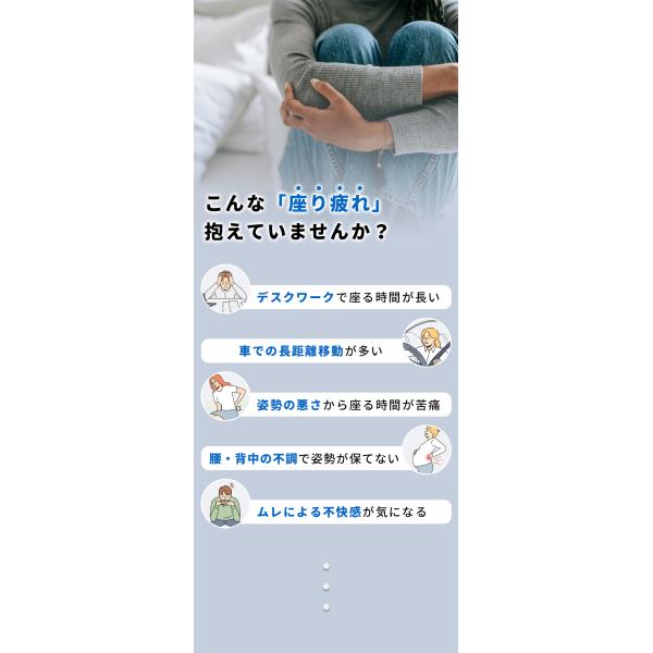 - 腰やお尻への負担を軽減!ジェル素材による衝撃吸収。