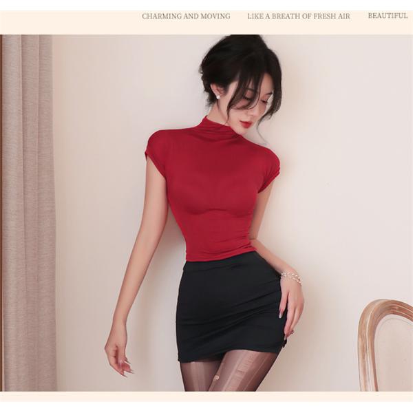セクシーランジェリー ベビードール 人気 セクシー タイトスカート 秘書 制服コスプレ 赤黒 透け感