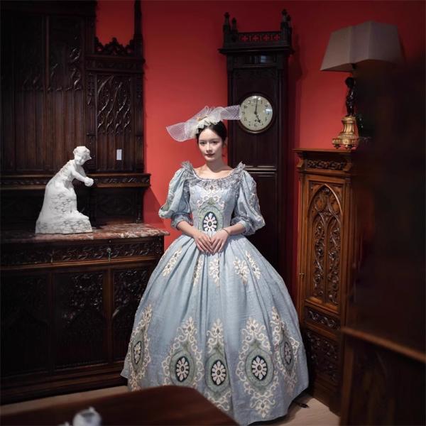 ヨーロッパ中世 レトロ宮廷ドレス ヴィクトリア風 フレンチ貴族プリンセス ロングドレス ランウェイ 撮影 写真 礼装 250hah09