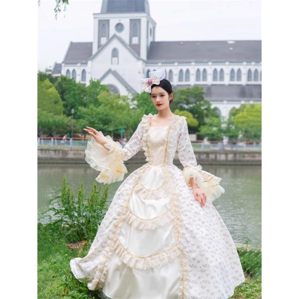 ヨーロッパ中世風 レト 宮廷ドレス ヴィクトリア風 プリンセスドレス 舞台衣装 ランウェイ 撮影 写真用礼服 白