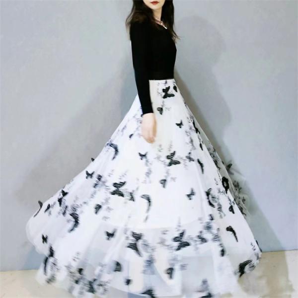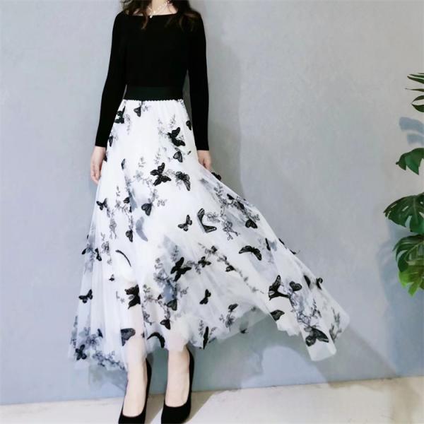 立体レース 刺繍 ネットスカート ハイウエスト フレア シェイプアップ ハーフスカート 社交ダンス スカート 練習用ドレス 大きいサイズ