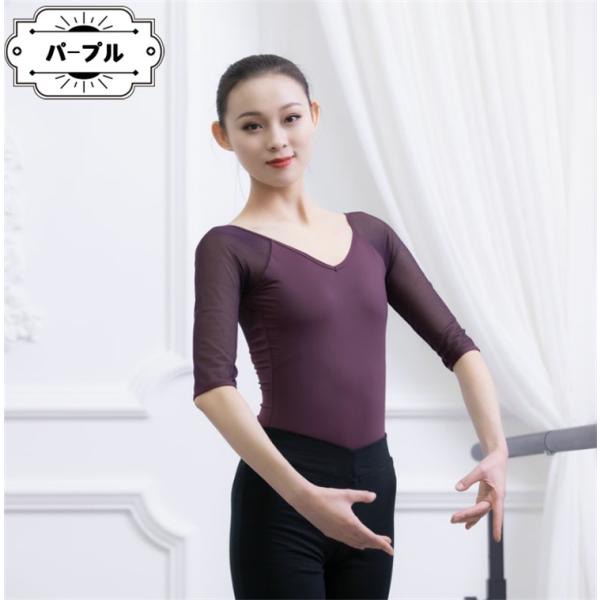 バレエ レオタード 大人用 半袖 五分袖 背中開きタイプ 新体操 モダンダンス 練習用 体操服 練功用 連体型 レディース
