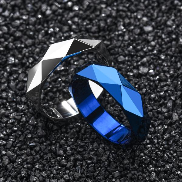 【ペアリング】不規則カット 菱形 チタン製 ステンレスリング 6mm 幅 メンズ レディース 指輪 ユニセックス 個性派 カップル お揃い250hcb01