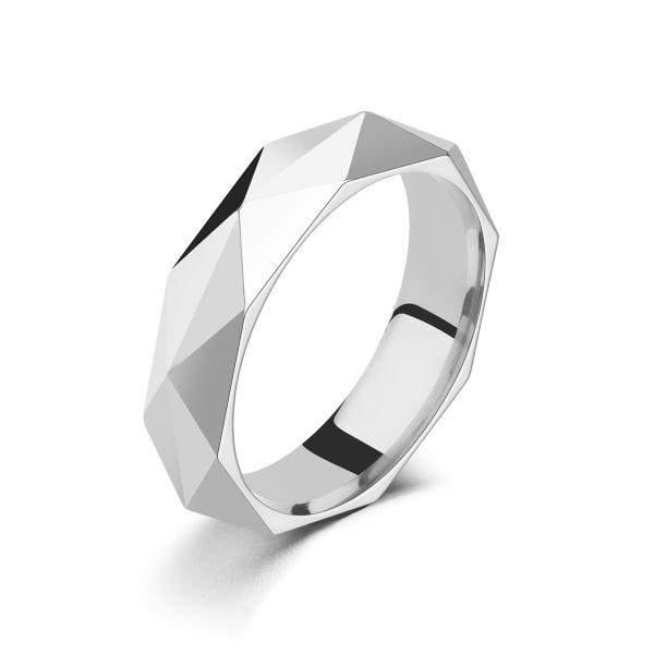 不規則なカッティングと菱形シルエットが目を引く、ユニセックス対応のステンレスリング。
