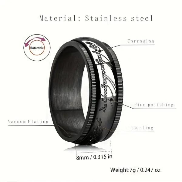 神秘的な雰囲気をまとった、黒のステンレス製メンズリング。