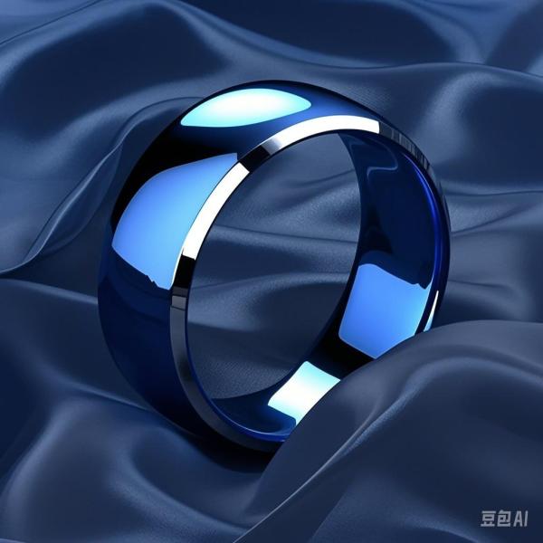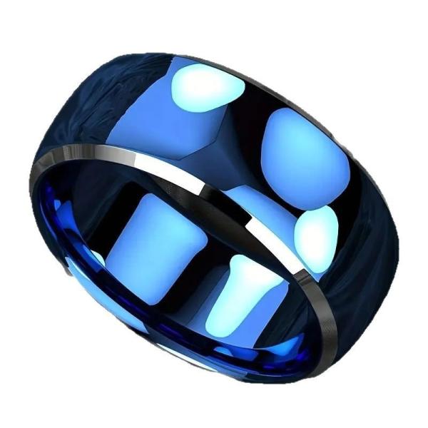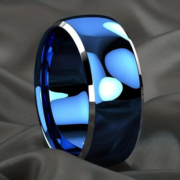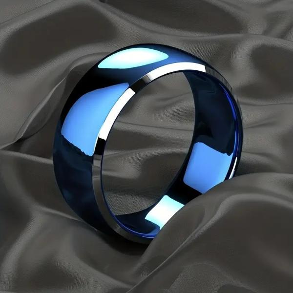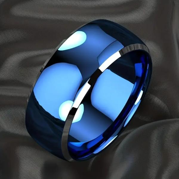 8mm ブルーリング ダブルカット エッジ ステンレス製 指輪 シンプル モダン メンズ レディース ペアにも
