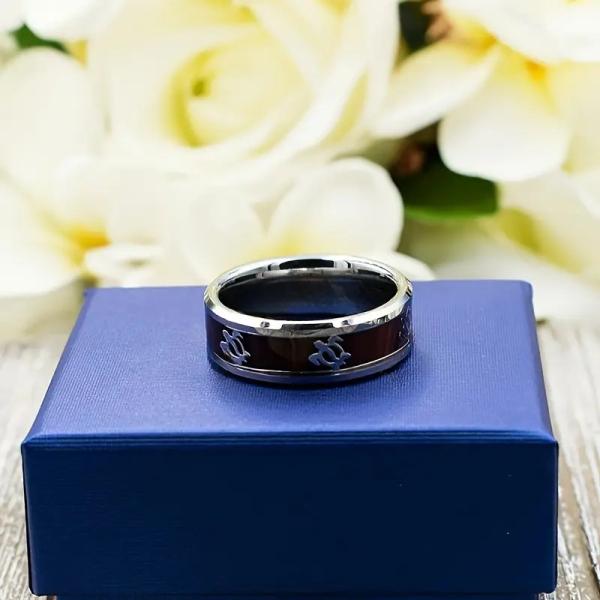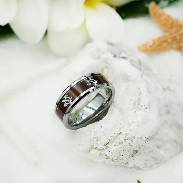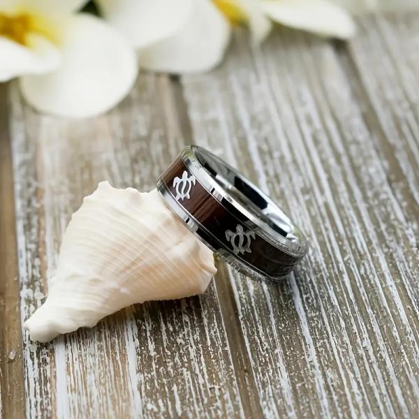 ウミガメ模様 チタン鋼リング 木目調インレイ メンズ レディース 指輪 シンプル 個性派 人気アクセサリー