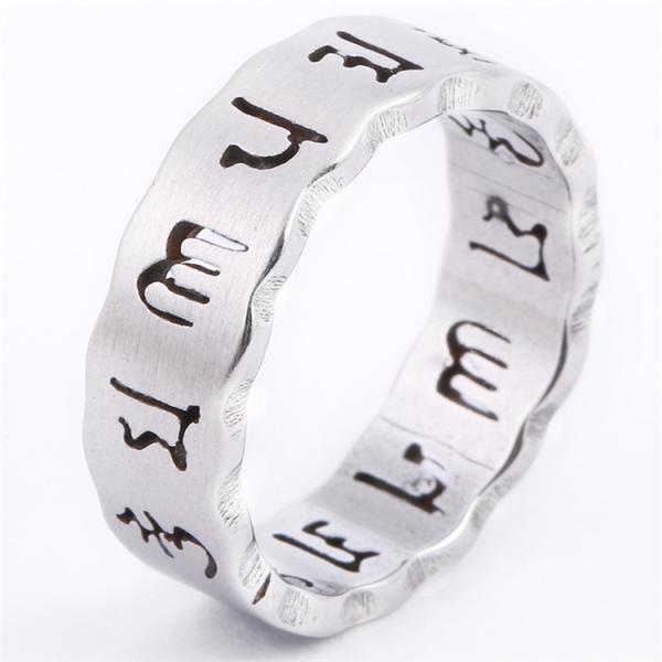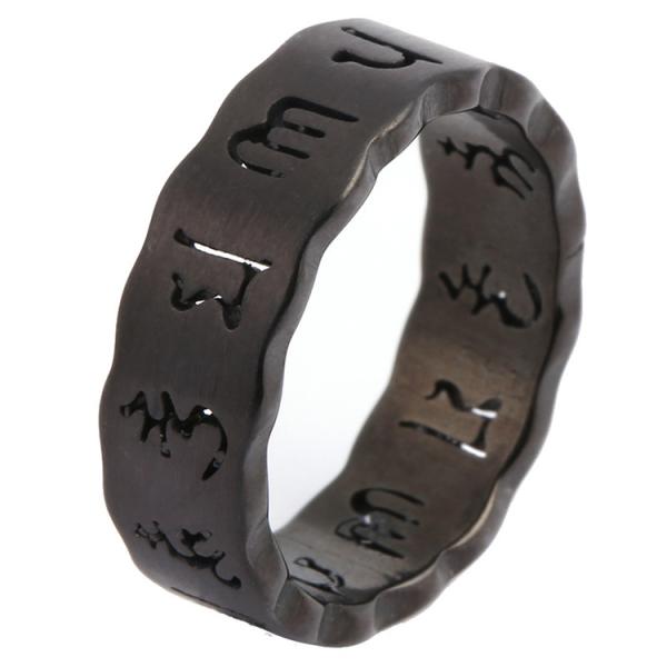 レーザー彫刻 六字真言 リング メンズ レディース 指輪 チタン鋼 鏤空デザイン ステンレス製 アクセサリー