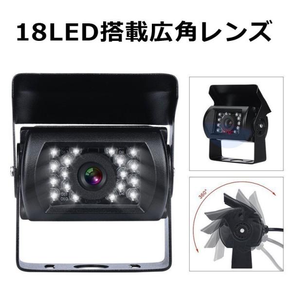 12V/24V対応バックカメラ LED 18発 乗用車、トラック、バス、重機等対応 バックモニター用カメラ ガイドライン無し bk500