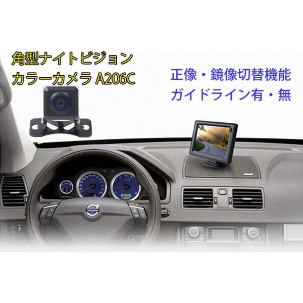 バックカメラセット 4.3インチモニター搭載 超小型防水IP67CCDバックカメラ 正像・鏡像切替機能 ガイドライン有り・無し機能 角型ナイトビジョン OMT43600
