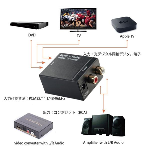 オーディオ変換器 デジタル(光&同軸)からアナログ(RCA) DAコンバーター TOSLINK入力 コンポジット出力 USB、光ケーブル付き 3点セット DACSET3