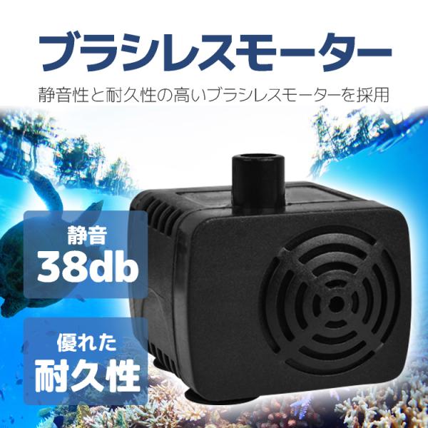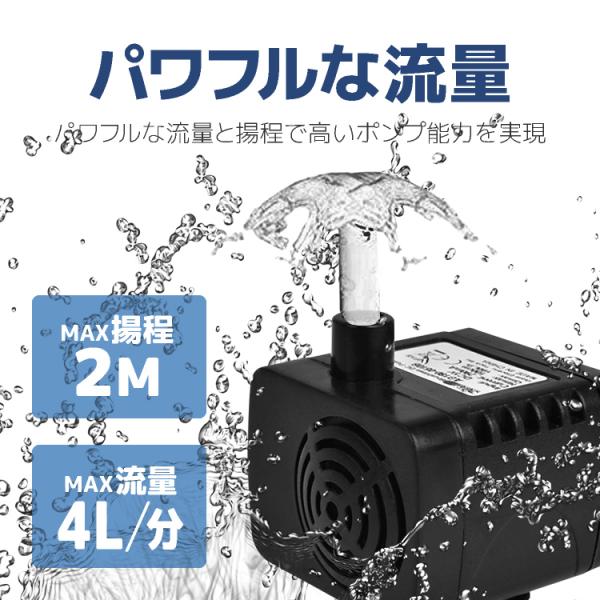 汎用ミニ水中ポンプ DC12V 小型ブラシレスポンプ 静音設計 ウォーターポンプ 流量280L/h 最大揚程2m 交換用取水口 電源コード付 PAD400