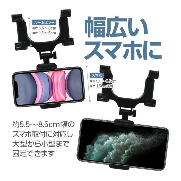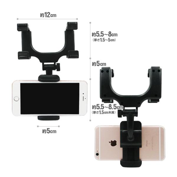 ルームミラー用車載スマホホルダー iPhoneXI対応 取り付け簡単 ルームミラーに挟むだけ ナビに最適 車載用 バックミラーマウントホルダー 汎用タイプ TORE400