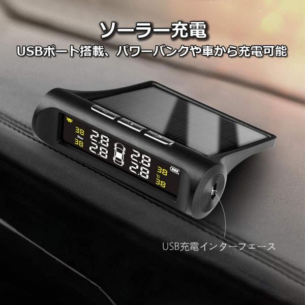 タイヤ空気圧監視システム モニタリング タイヤセンサー 無線測定 ソーラー充電/USB充電 気圧/温度計測監視 振動感知 外部センサー 1.5-6BAR 取付簡単 STST02