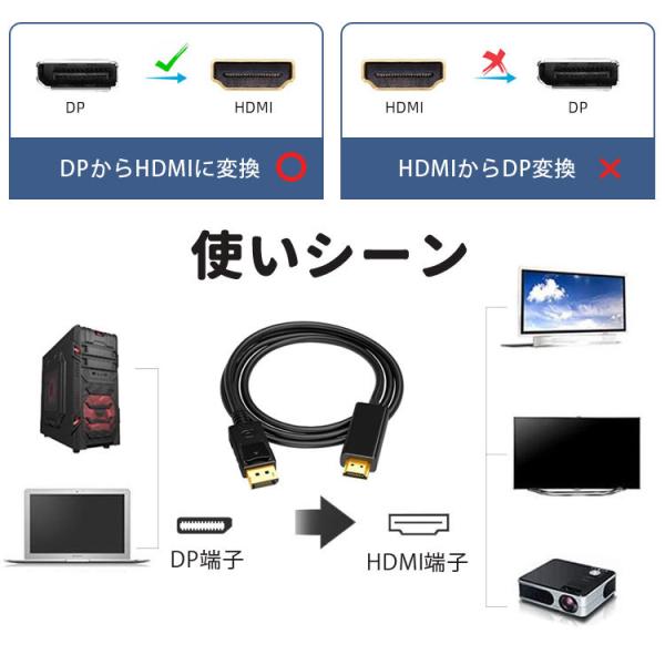 DisplayPort to HDMI 変換ケーブル 1.8m DPからHDMI 1080p 映像、音声同時出力 モニター プロジェクターに DisplayPort(オス)からHDMI端子(オス) DP2HDMI18