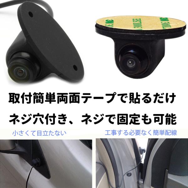 超小型車載カメラ 粘着式 取付簡単 死角対策 フロント/バック/サイドカメラ 角度回転 正像・鏡像切替 ガイドライン有無切替 穴開け不要 12V専用 防水 CCUFO2200