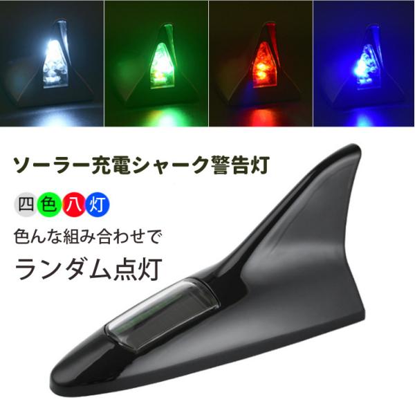 車用シャークフィン警告灯 LED警告灯 ソーラー充電 シャークアンテナ形 光センサーと振動センサー カースタイリング警告 白、緑、赤、青4色変色 点滅 SCSAT08