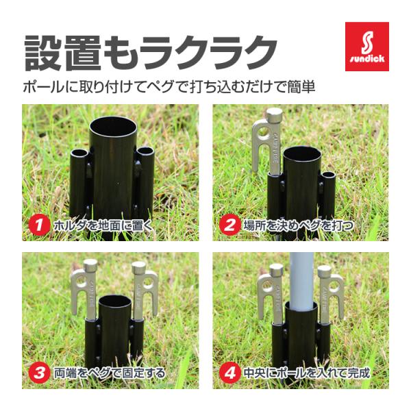 SUNDICK テントポール/タープポール用 固定ホルダー 2個セット スチール製 強風対策 らくらく設営 アウトドア便利グッズ テント タープ 支柱固定など SDKCRH02S