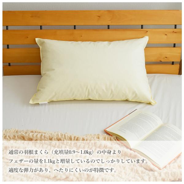 羽根枕 ホテル品質の 羽根枕 増量タイプ 羽根まくら はねまくら フェザーピロー フェザー枕 ホテル枕 羽枕 羽毛枕 柔らか枕 ホテル仕様