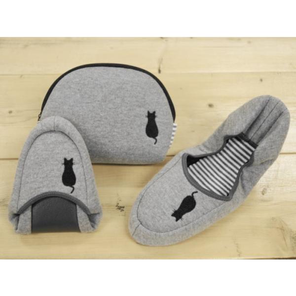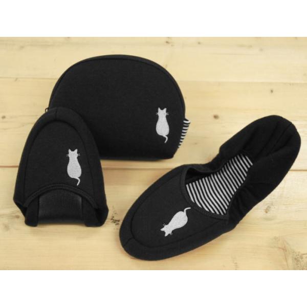 ネコの刺繍入りニット携帯スリッパ 送料無料 当日発送 最短お届け かわいい おしゃれ 折りたたみ 定番 人気 お受験 入園式 卒園式 入学式 卒業式
