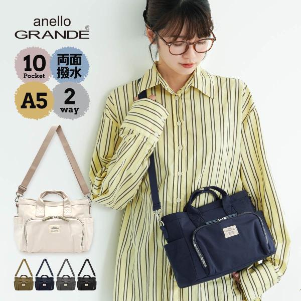 ショルダーバッグ 2WAY ミニトート レディース A5 anello GRANDE 10ポケット 両面撥水 軽量270g 多収納 前面ファスナー サイドポケット 500ml 斜めがけ 5色