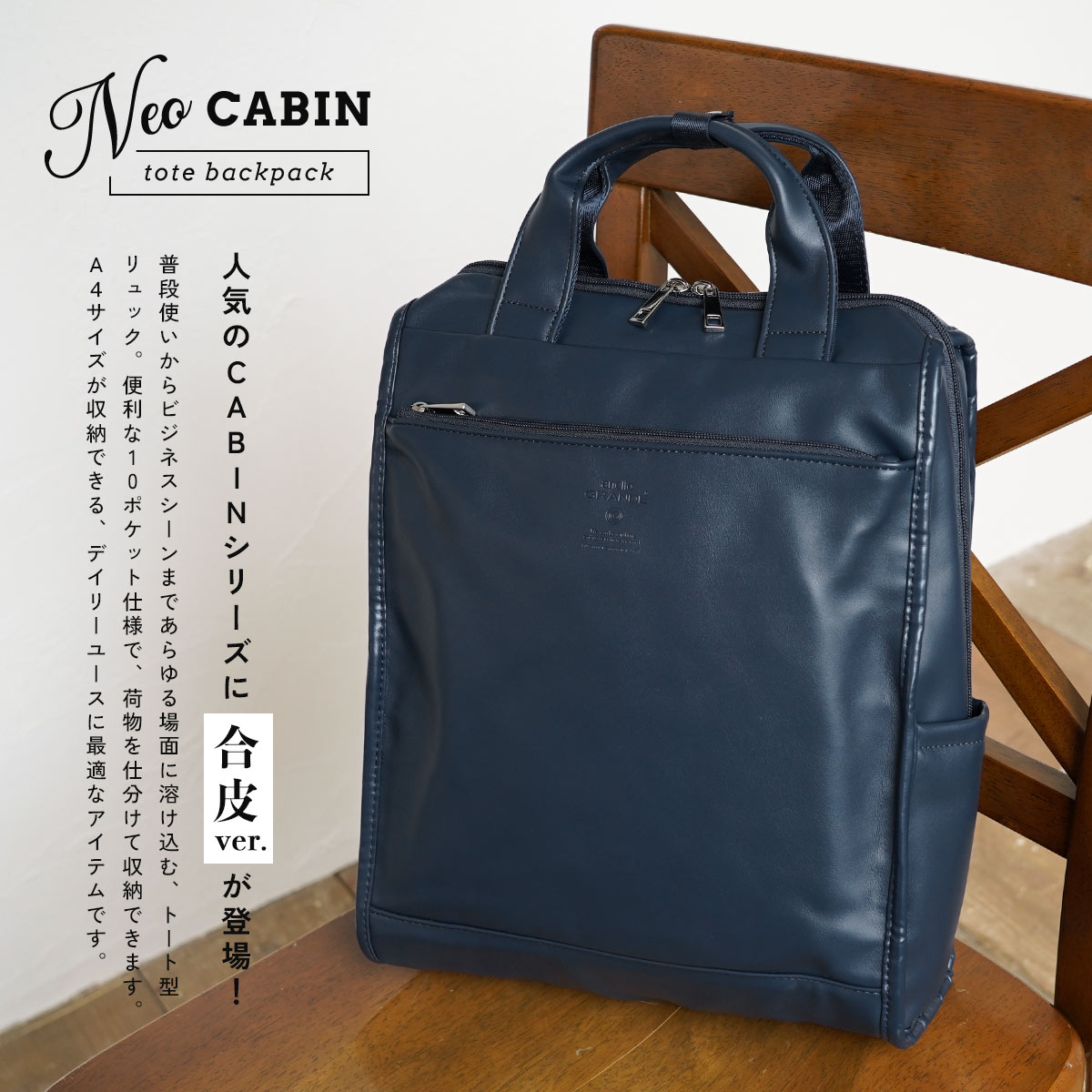 リュック レディース A4サイズ対応 10ポケット 大容量13L トートバッグ 2way 通勤 anello GRANDE 合成皮革 軽量 おしゃれ Neo CABIN トートリュック 5色展開