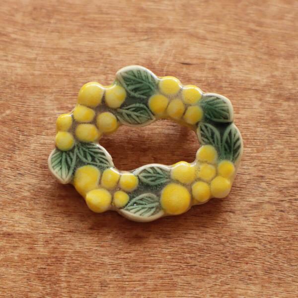 TOMI-kobo 陶器 ブローチ ミモザ ジュエリー ハンドメイド アクセサリー レディース おしゃれ かわいい 花 母の日 オケージョン 入学式 入園式