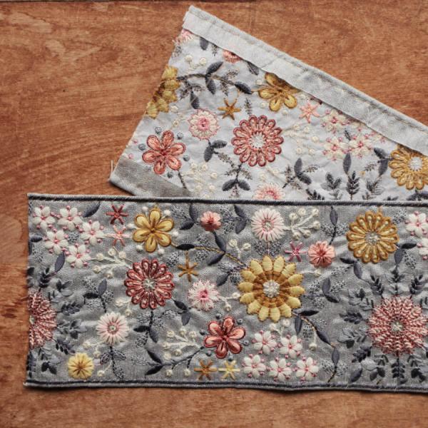 インド 刺繍リボン チロリアンテープ テープ リボン 手芸 ハンドメイド 女の子 男の子 入園 入学 かわいい 刺繍リボン 50cm スザニフラワー グレー地 10cm幅
