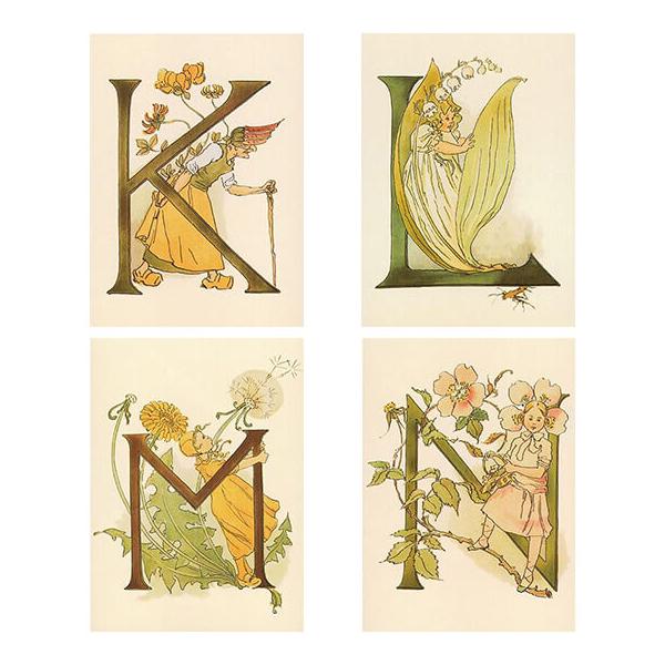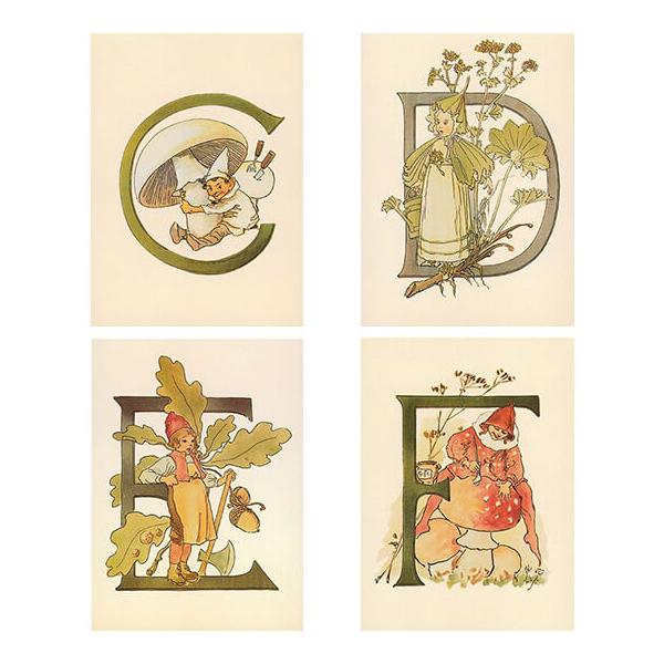 スウェーデン製 ポストカード 北欧 おしゃれ セット アート 花 かわいい 絵はがき 葉書 スウェーデン製 Ottilia Adelborg ポストカード 2枚セット A〜N