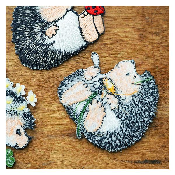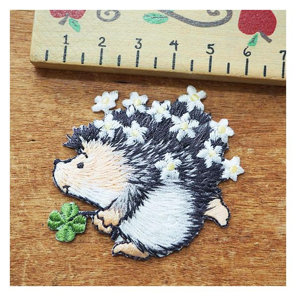 アップリケ アイロン ワッペン 女の子 男の子 入園 かわいい Totalitat トタリタット アイロンワッペン 花畑のハリネズミとクローバー メール便対象品
