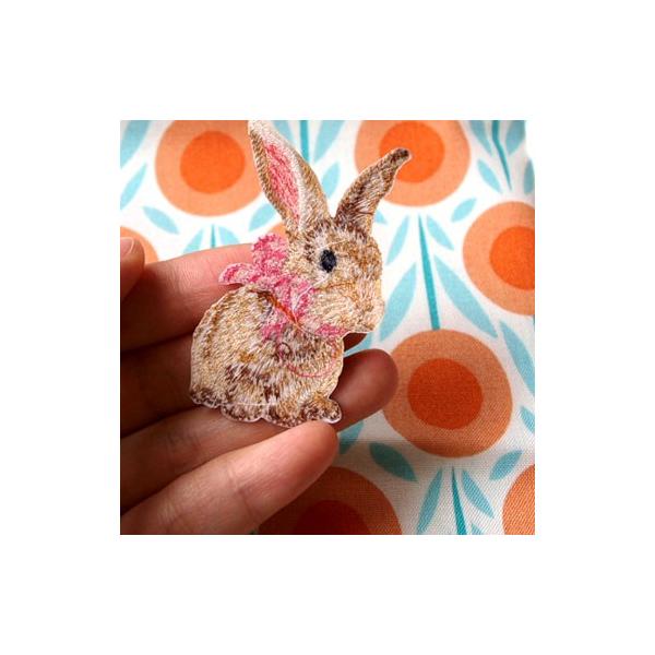 ワッペン アイロン アップリケ ウサギ ラビット 女の子 入園 かわいい Totalitat トタリタット アイロンワッペン ピンクリボンのうさぎ