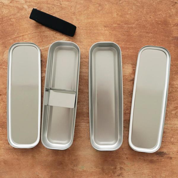 工房アイザワ 弁当箱 ステンレス製 角長 スリム 2段 ランチボックス 350ml×2 日本製 大人 女性 男性 子供 お弁当箱 仕切り付き