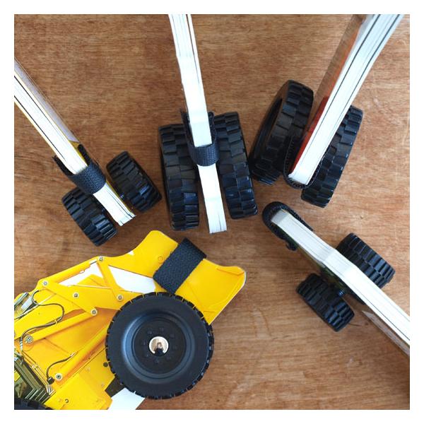 ベルクロテープで本をきちんと留められますので、ホイールトーイとしても遊べます。