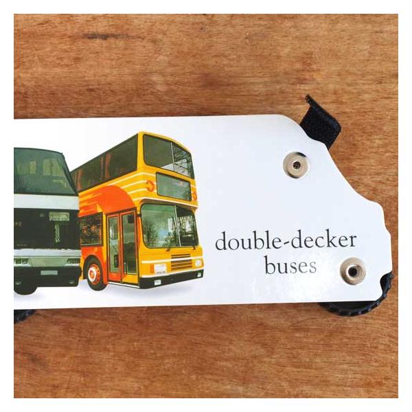 車輪付き車の英語しかけ絵本。世界のスクールバス写真集。