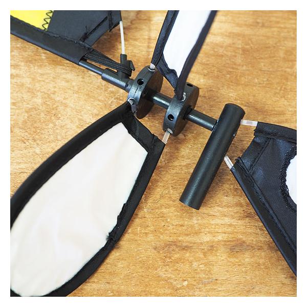 ●穴を一つずつずらして羽を差し込みます。
