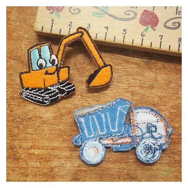 ワッペン アイロン アップリケ ダンプトラック ショベルカー 車 男の子 入園 ハンドメイド トタリタット アイロンワッペン ダンプトラックとショベルカー