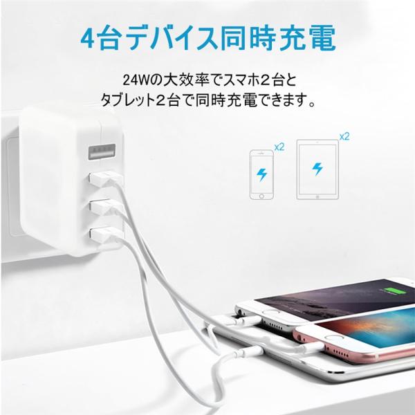 ACアダプター USB4ポート チャージャー USB急速充電器 2.4A超高出力 iPhone 16/15充電対応 高速充電 電源アダプター PSE認証済み【PL保険加入済み製品・安心】